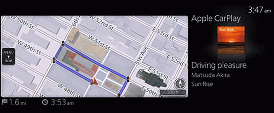 Карты и информацию о воспроизводимой музыке можно просматривать одновременно с помощью функции разделения экрана